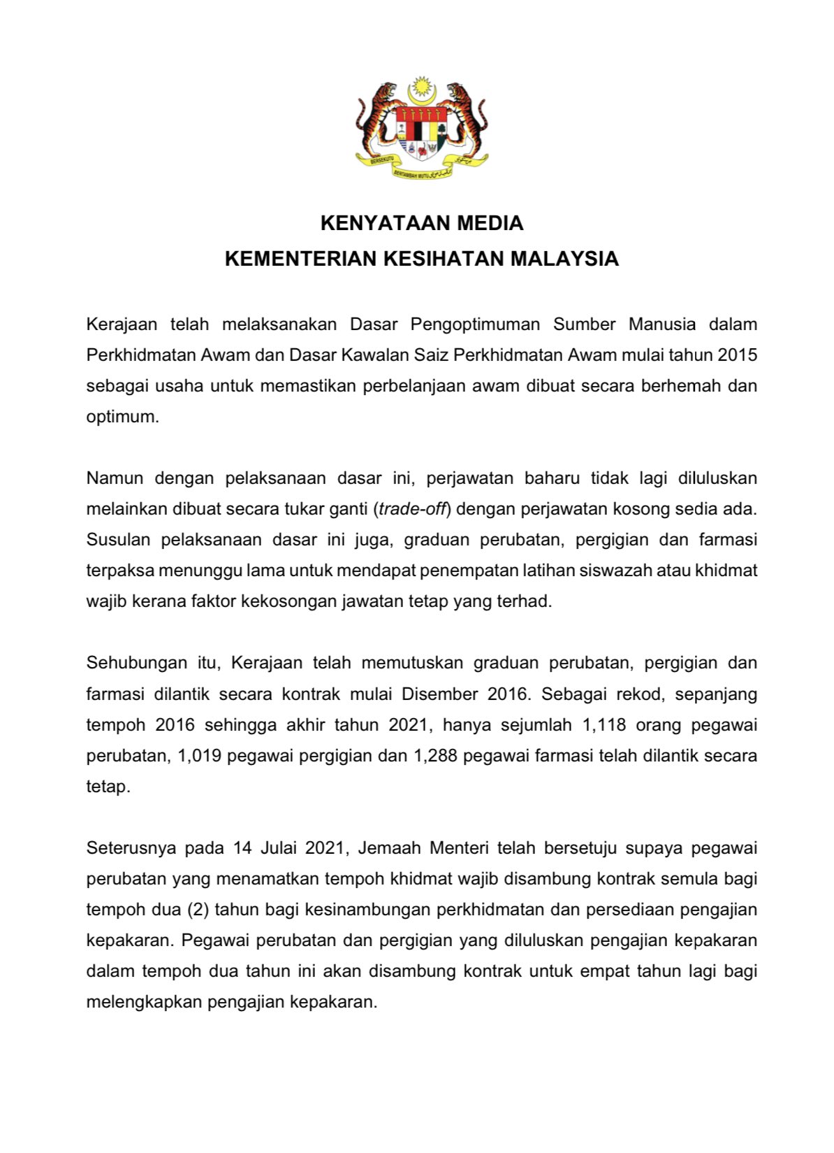 Kkmalaysia On Twitter Kenyataan Media Kementerian Kesihatan Malaysia Berkenaan Doktor Kontrak Https T Co Ovdo2uqtw2 Twitter